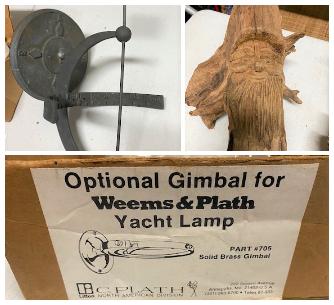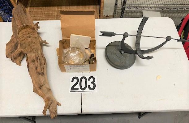 LOT#203G: Sun Dial, Yacht Lamp Attachment & Driftwood Gnome