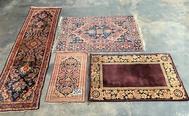 3 area rug; 1 runner. 3 Persian style; 1 contemporary wool. Measurement: 122"L x 34"W (runner)