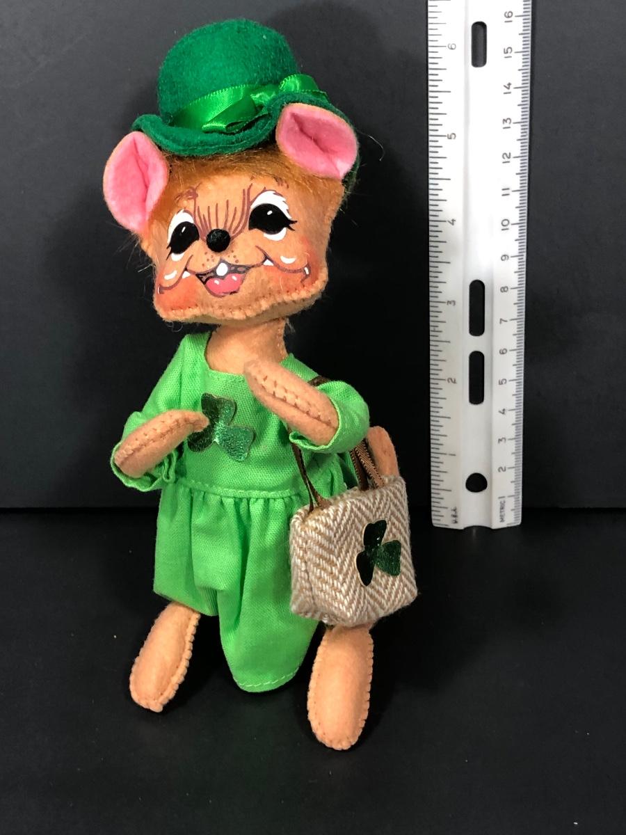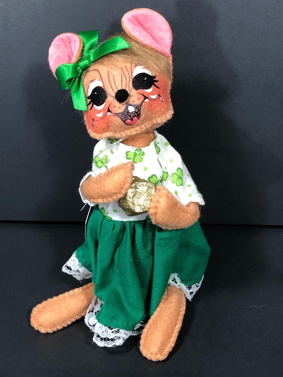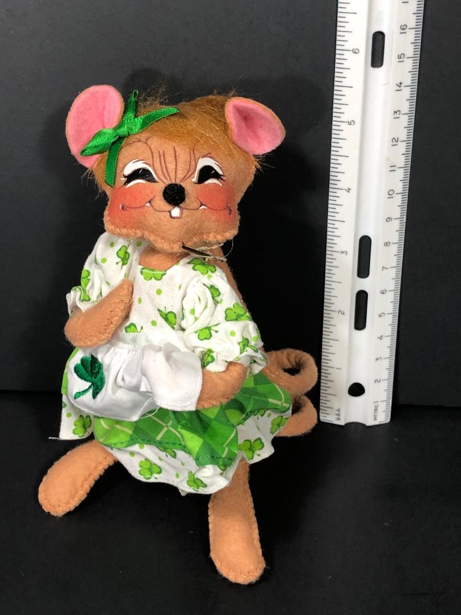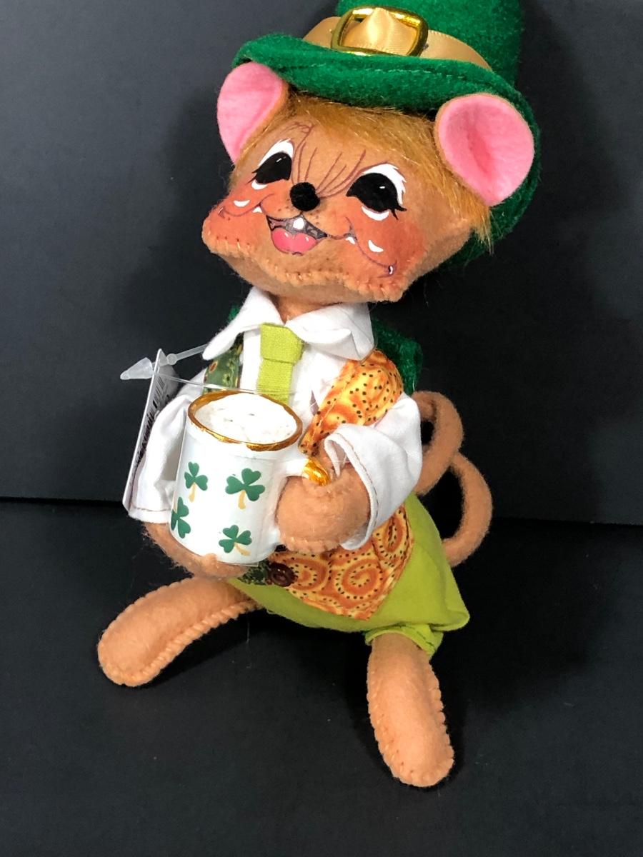 Six Annalee mice including 6" Irish Coffee Mouse, 6" St. Patrick's Girl Mouse * more without tags.