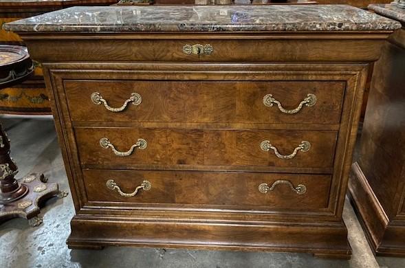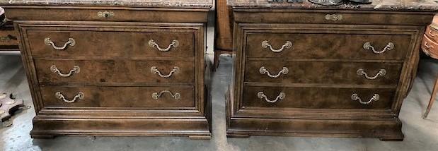 Charles X Henredon. Each 4 drawers. Marble tops. Furniture only. Measurement: 44"W x 19"D x 35"H (Each)