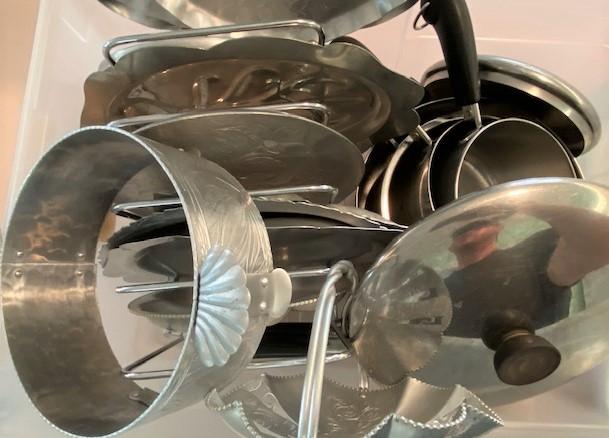 Serving trays, platter & more. Estimated weight of lot: 10lbs. Measurement: 23" x 23" (largest)