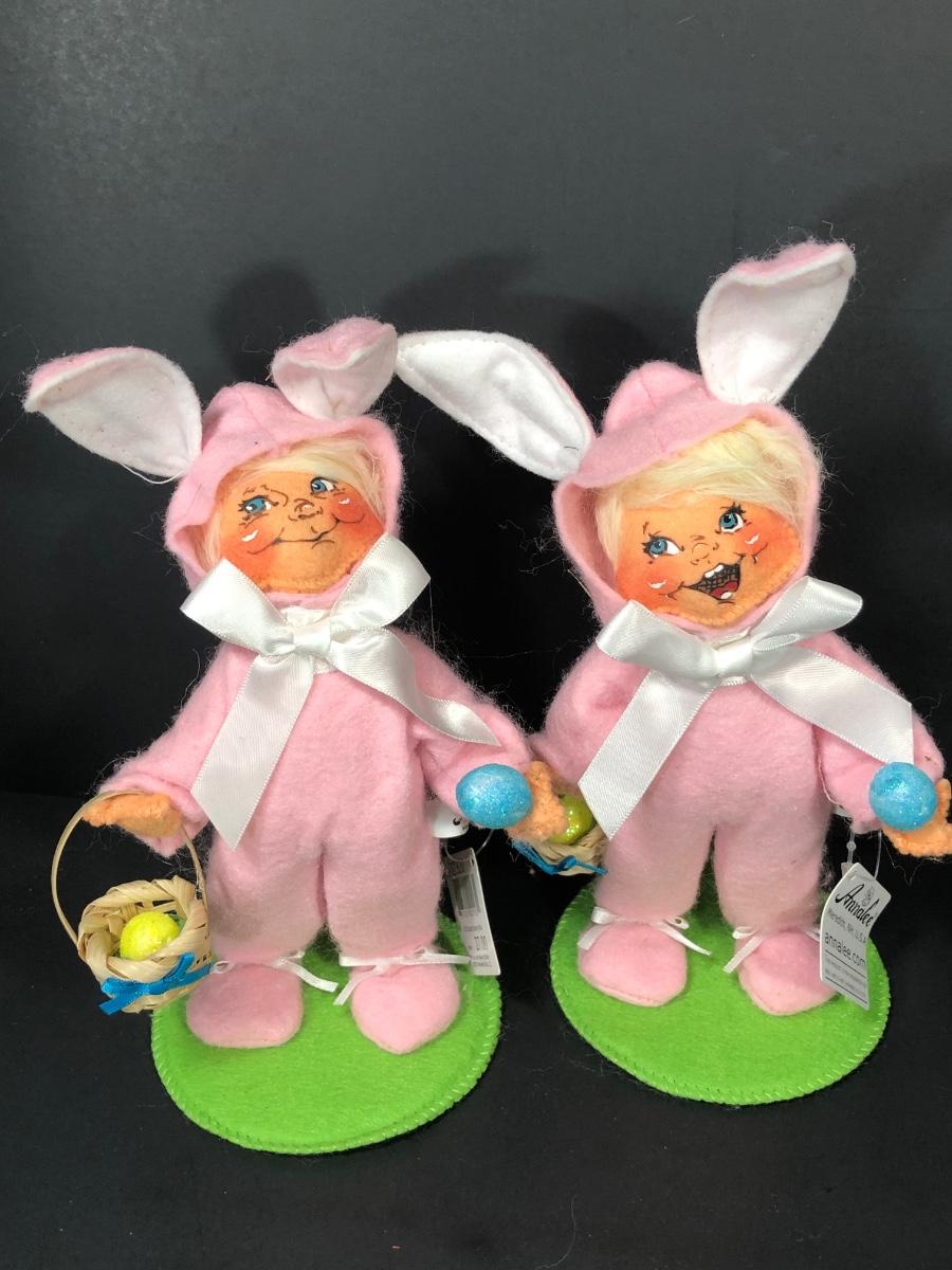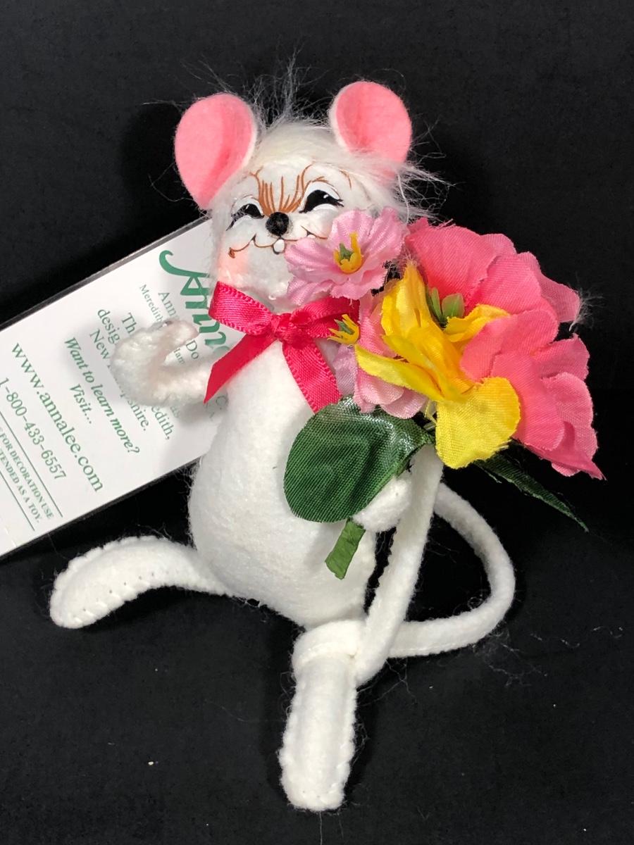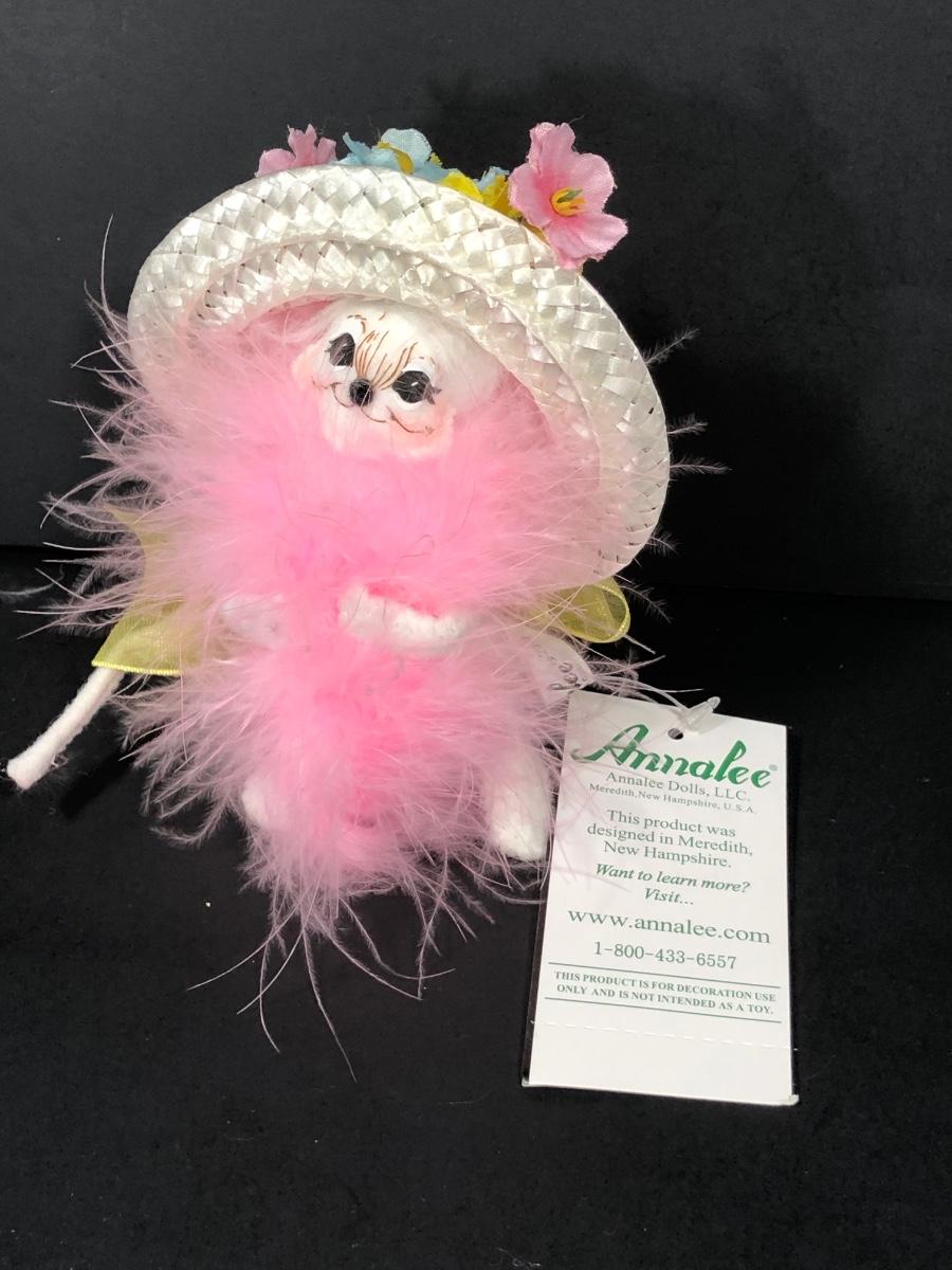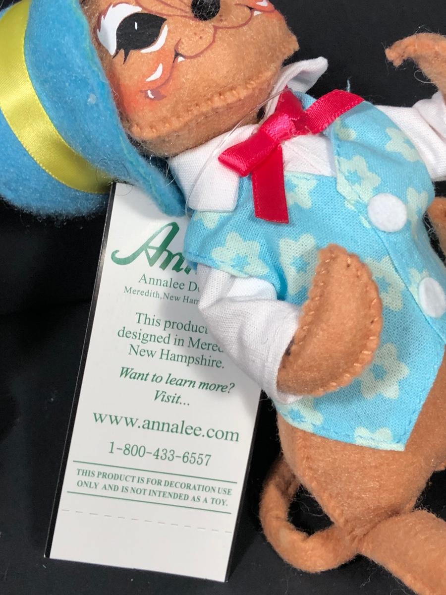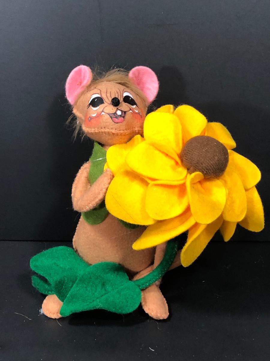 An assortment of Annalee dolls including two 6" Easter Bunny Kids, 8" Springtime Girl Mouse, 8" Springtime Boy Mouse, 6" Sunflower Mouse, 6" Spring Boy Mouse, 7" Ready For Rain Duck, 5" Spring Flowers Mouse, 5" Easter Bonnet Mouse, and 6" Spring Flowers Mouse.