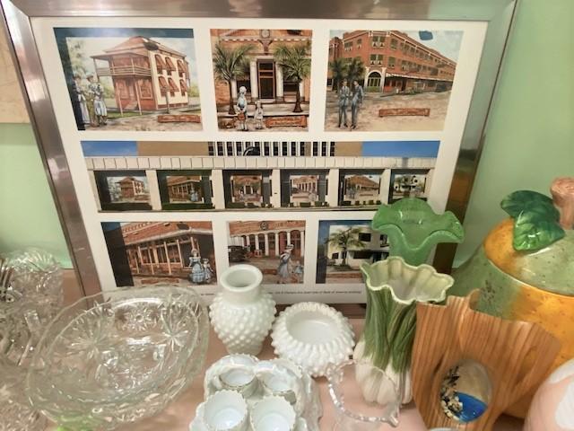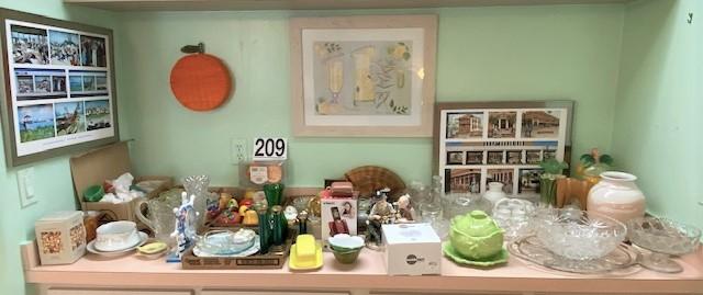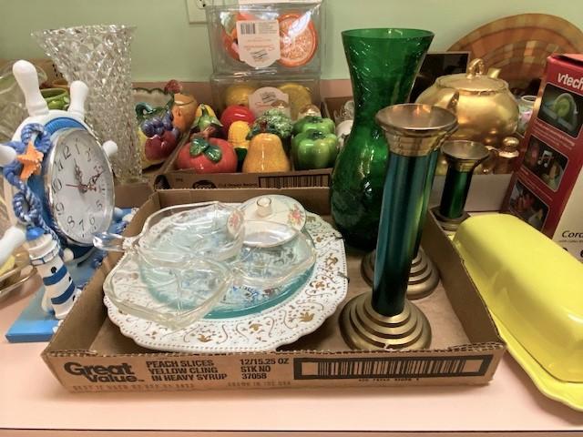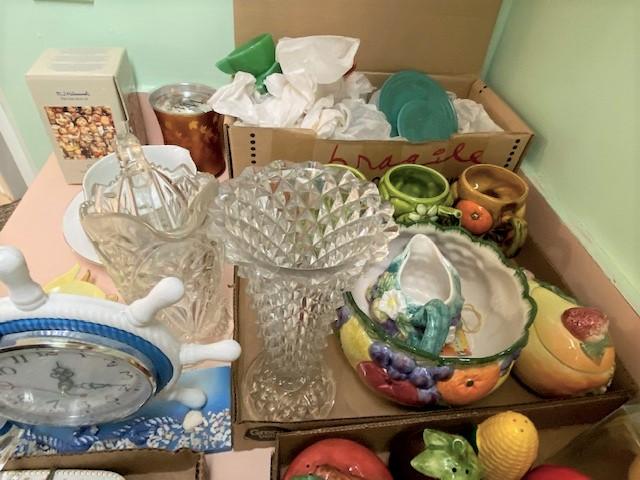 Phone, clock, bowls, vases, pictures & more. Estimated weight of lot: 50lbs. Measurement: 20" x 20" (largest)