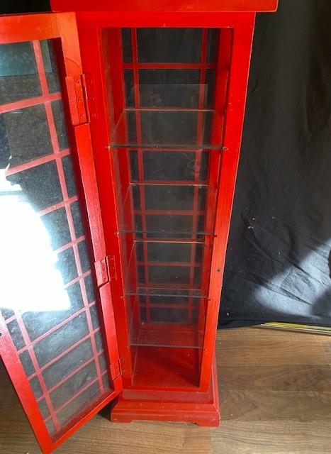 Five tier. Made of wood. No obvious damage. Measurement: 36"H x 9"W x 9"D