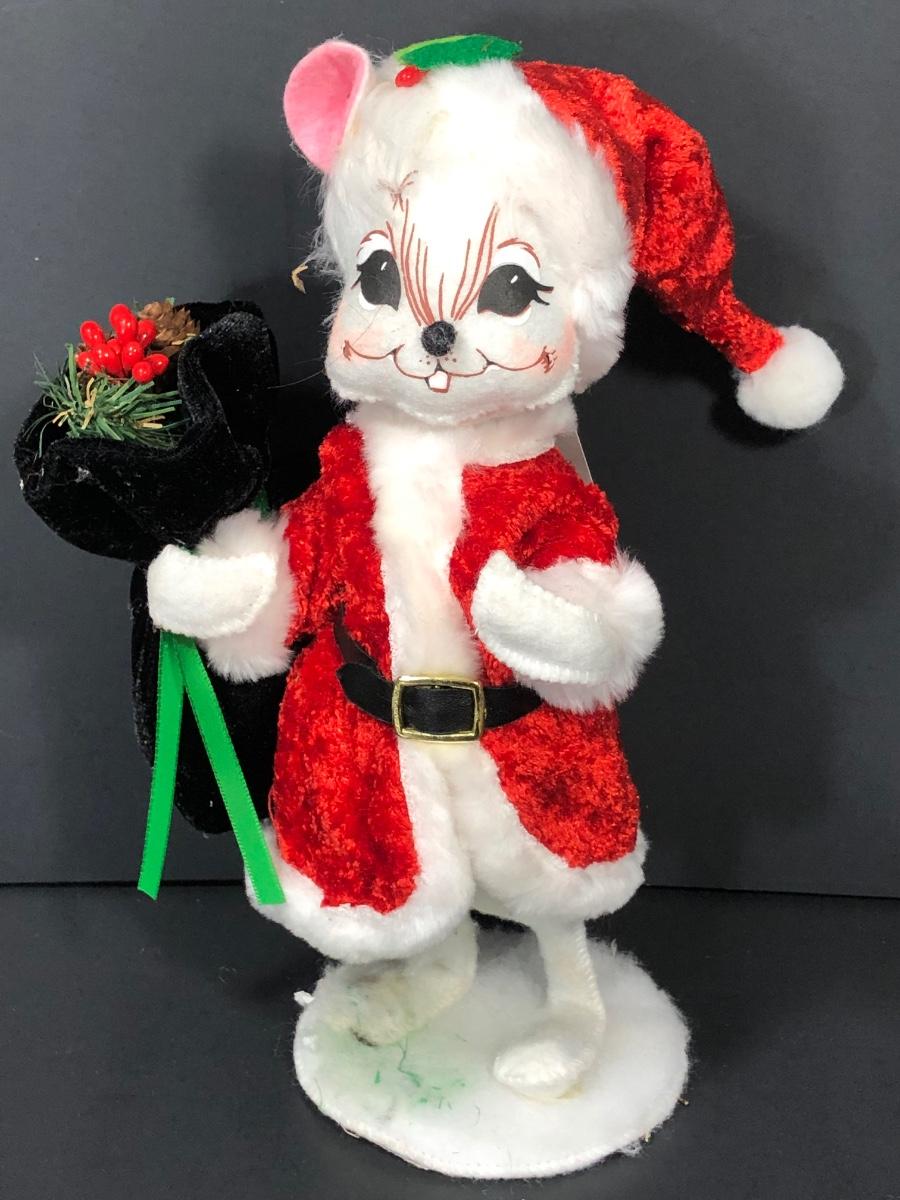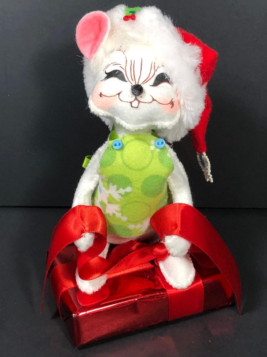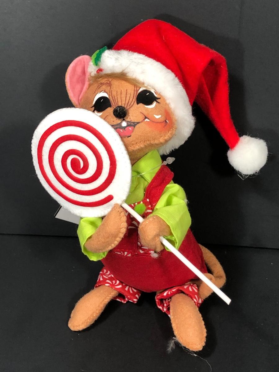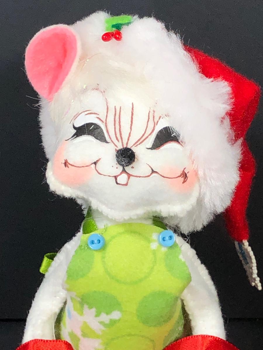 An assortment of Annalee dolls including 6" Shimmermint Chef Mouse, 8" Peppermint Mouse, 6" Snowflake Mouse on Gift Box, 8" Cozy Santa Mouse and more without tags.