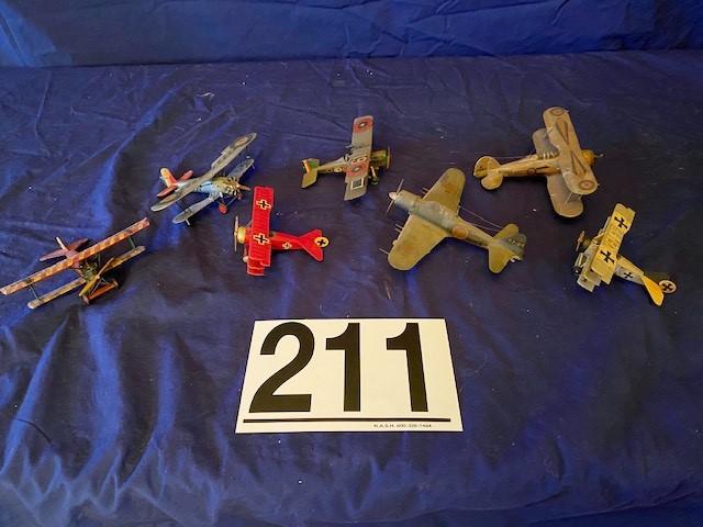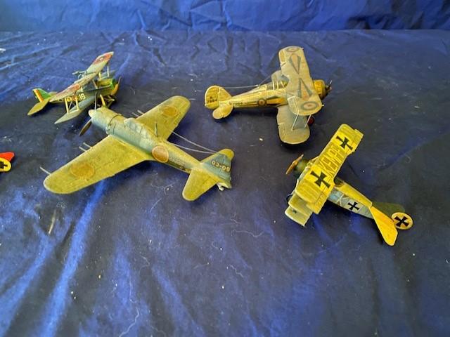 Appear to be assembled from kits. Includes six biplanes and a Japanese fighter. Total of 7 pieces. Measurement: 5"L x 6"W (largest)