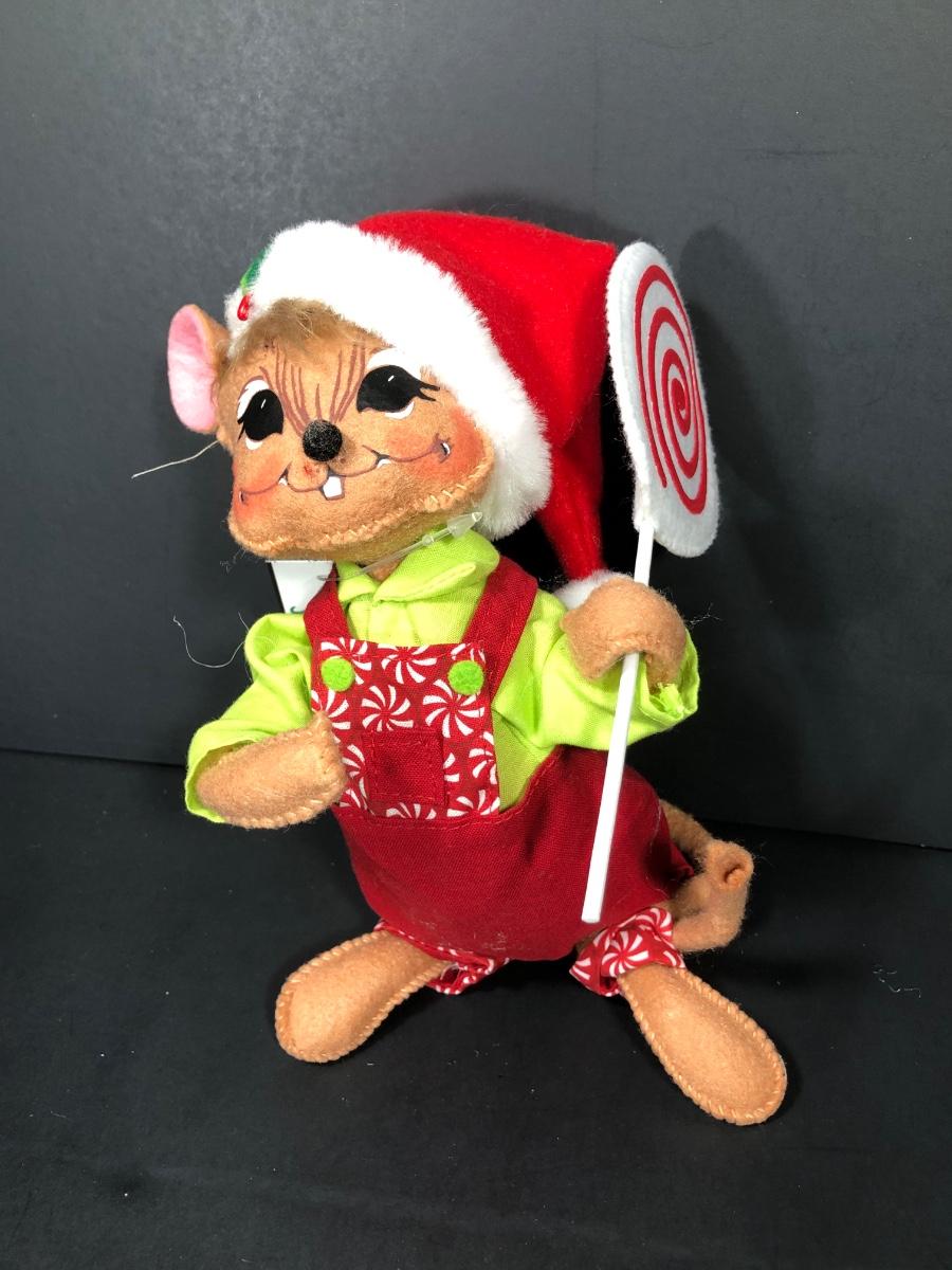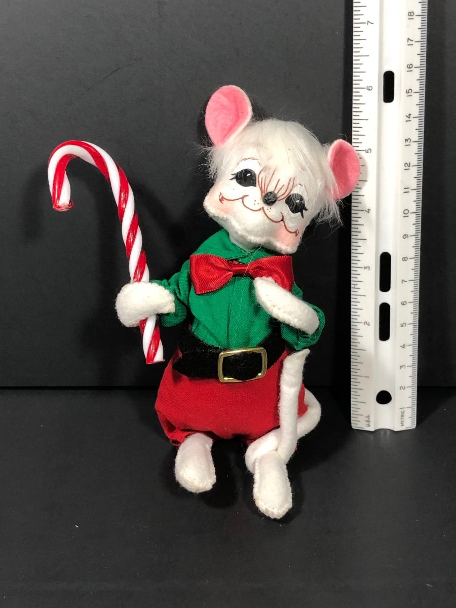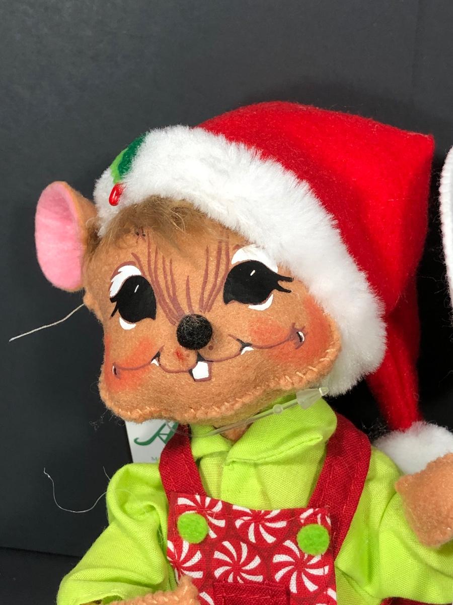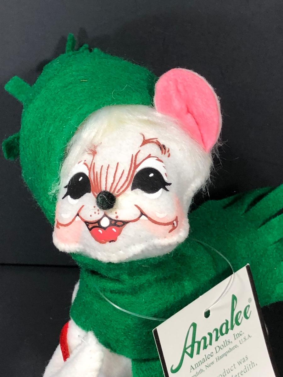 Five Annalee dolls including 8" Peppermint Mouse, 8" Cozy Mrs. Santa Mouse, 6" Mouse with Mittens and more without tags.