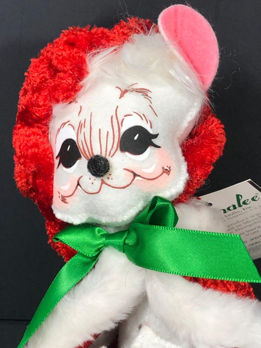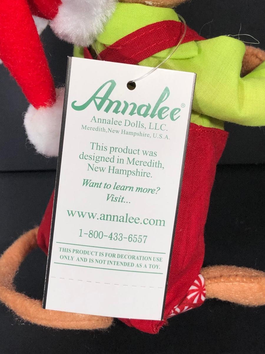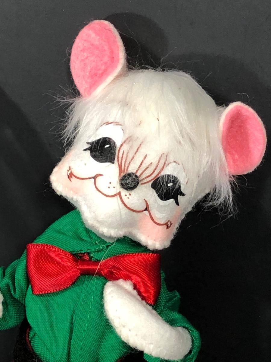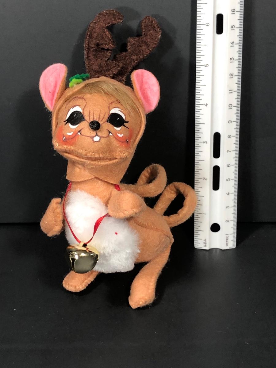 Five Annalee dolls including 8" Peppermint Mouse, 8" Cozy Mrs. Santa Mouse, 6" Mouse with Mittens and more without tags.