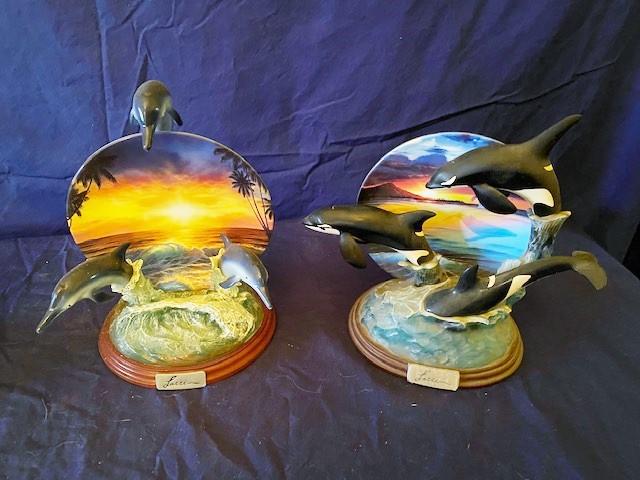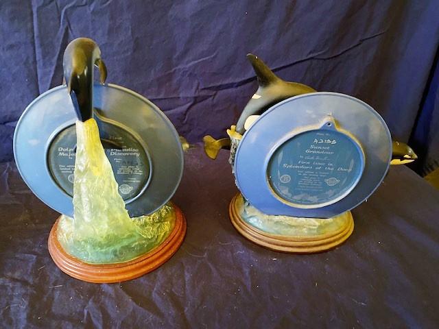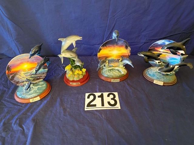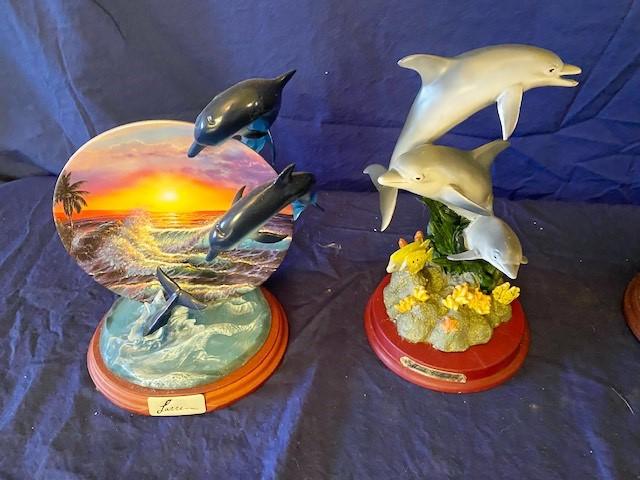 Dolphin motif. Numbered. Total of 4 pieces. Measurement: 9"H x 8"W (largest)