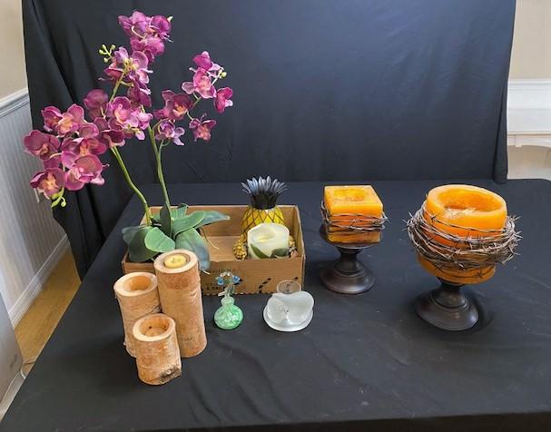 Includes candles, candle holders, scent bottle, and more. Measurement: 23"L x 16"W
