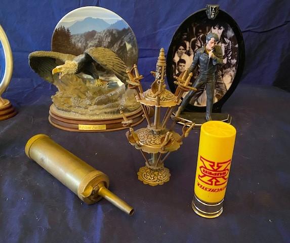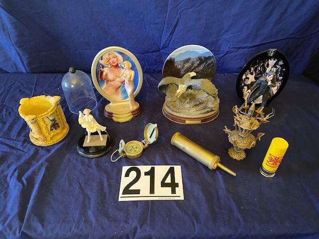 Includes Marilyn Monroe, Elvis, eagle plaque, compass, and more. Measurement: 8"H x 8"W (largest)