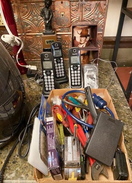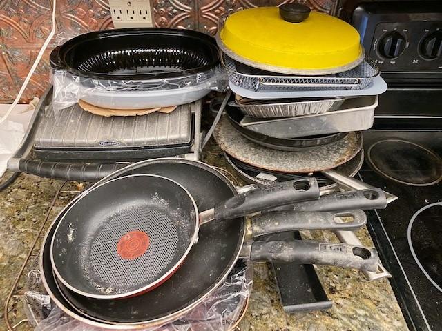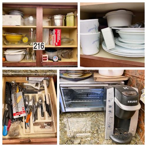 Includes Emeril Lagasse toaster oven, T-Fal cookware, knife blocks, blender, pots and pans, infrared oven, air fryer, Panasonic phone system, miscellaneous tools, Corelle, and much more. Winning bidder must take ALL items in lot.