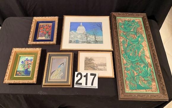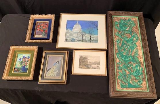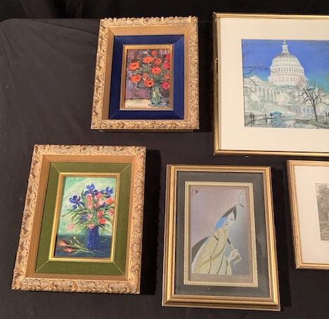 Some prints; some paintings. Estimated weight of lot: lbs. Measurement: 26"H (tallest) 14"W (widest)