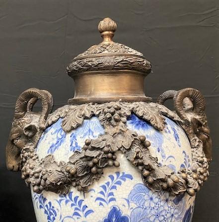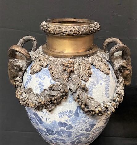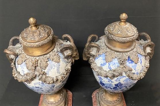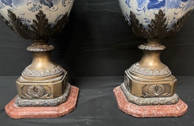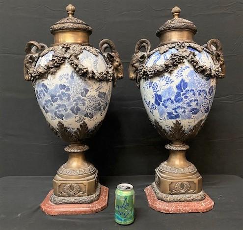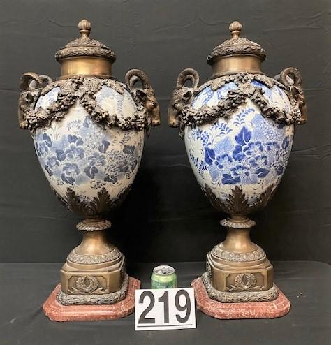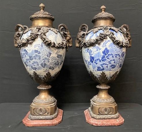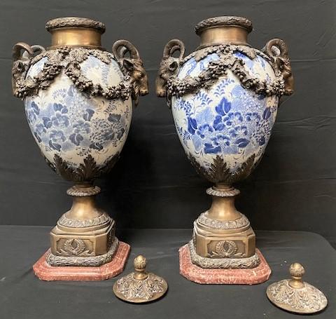Bronze & porcelain. Marble bases. Measurement: 31"H x 15"W (fully assembled; each)