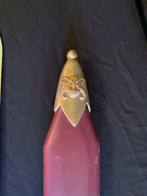 Composite pommel. Includes leather scabbard. Measurement: 41"L x 3"W
