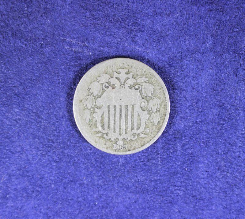 LOT#221J: 1869 Shield Nickel