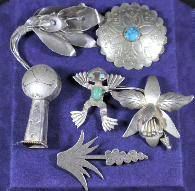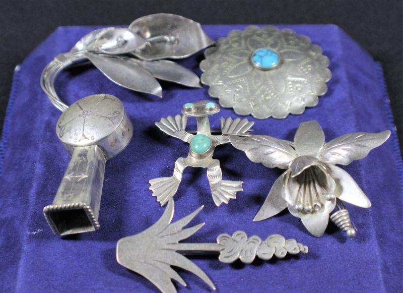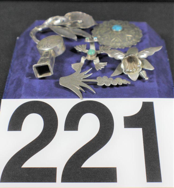 Some are marked Taxco, some have stones. Believed to be Southwestern or Mexican silver. 65g.