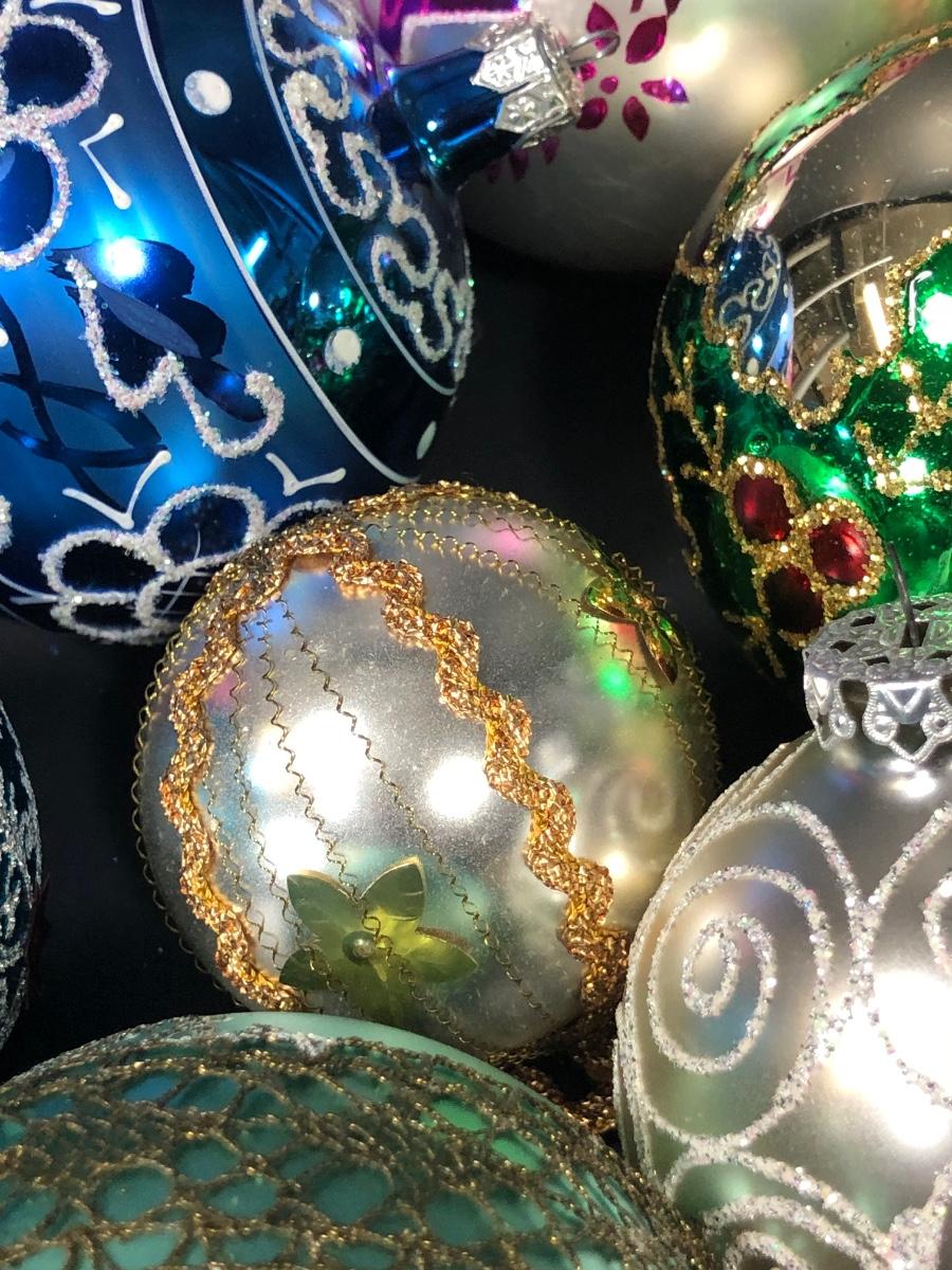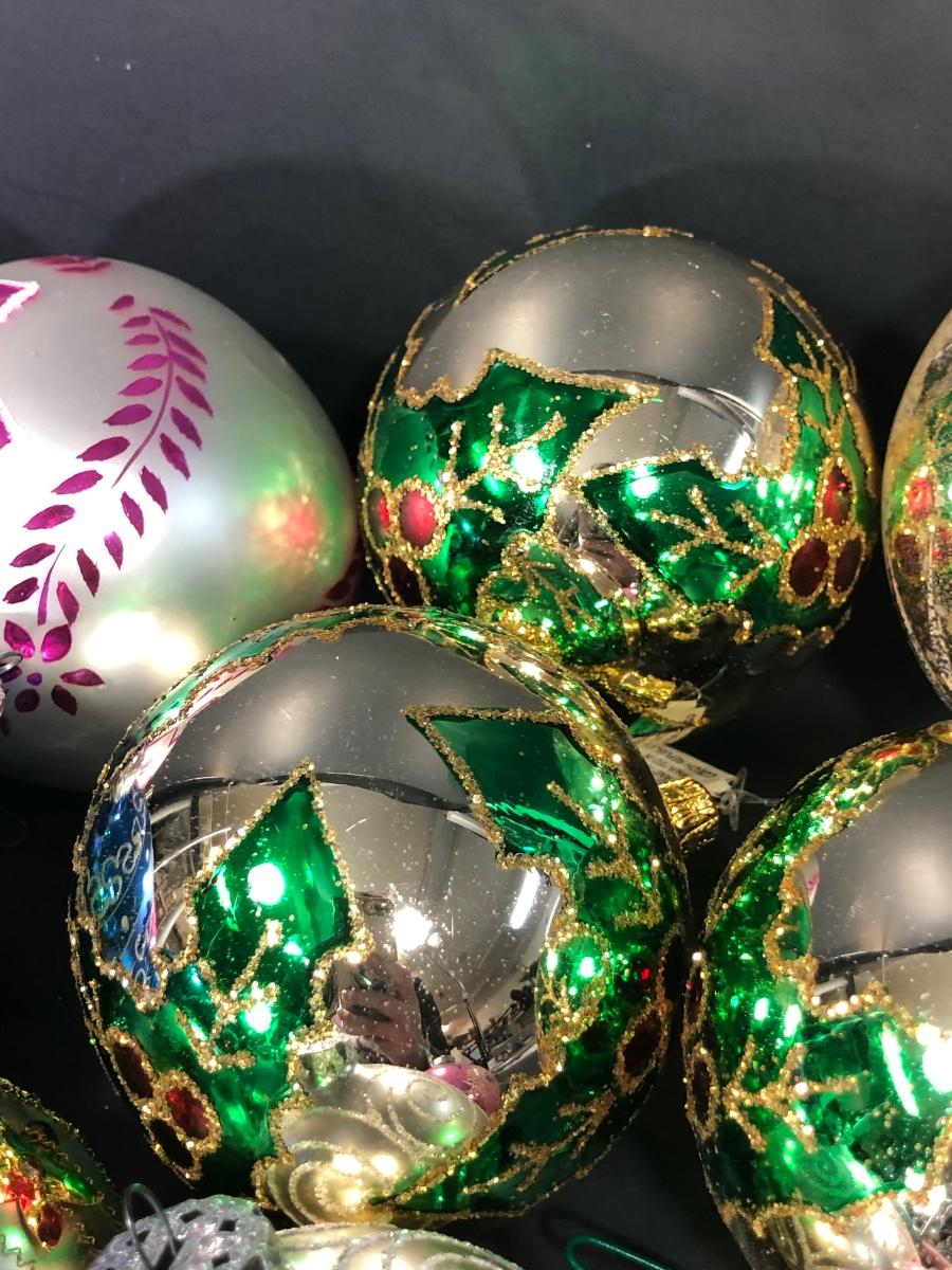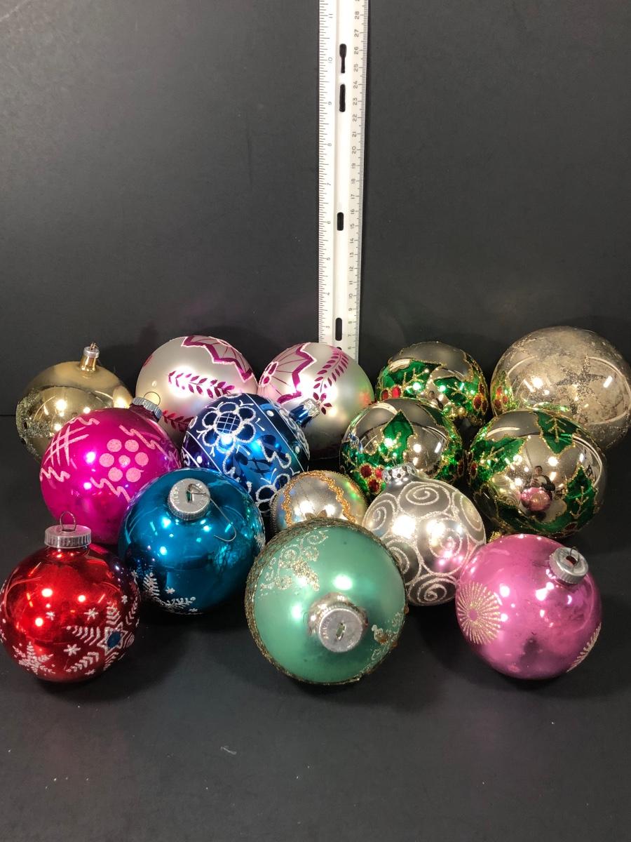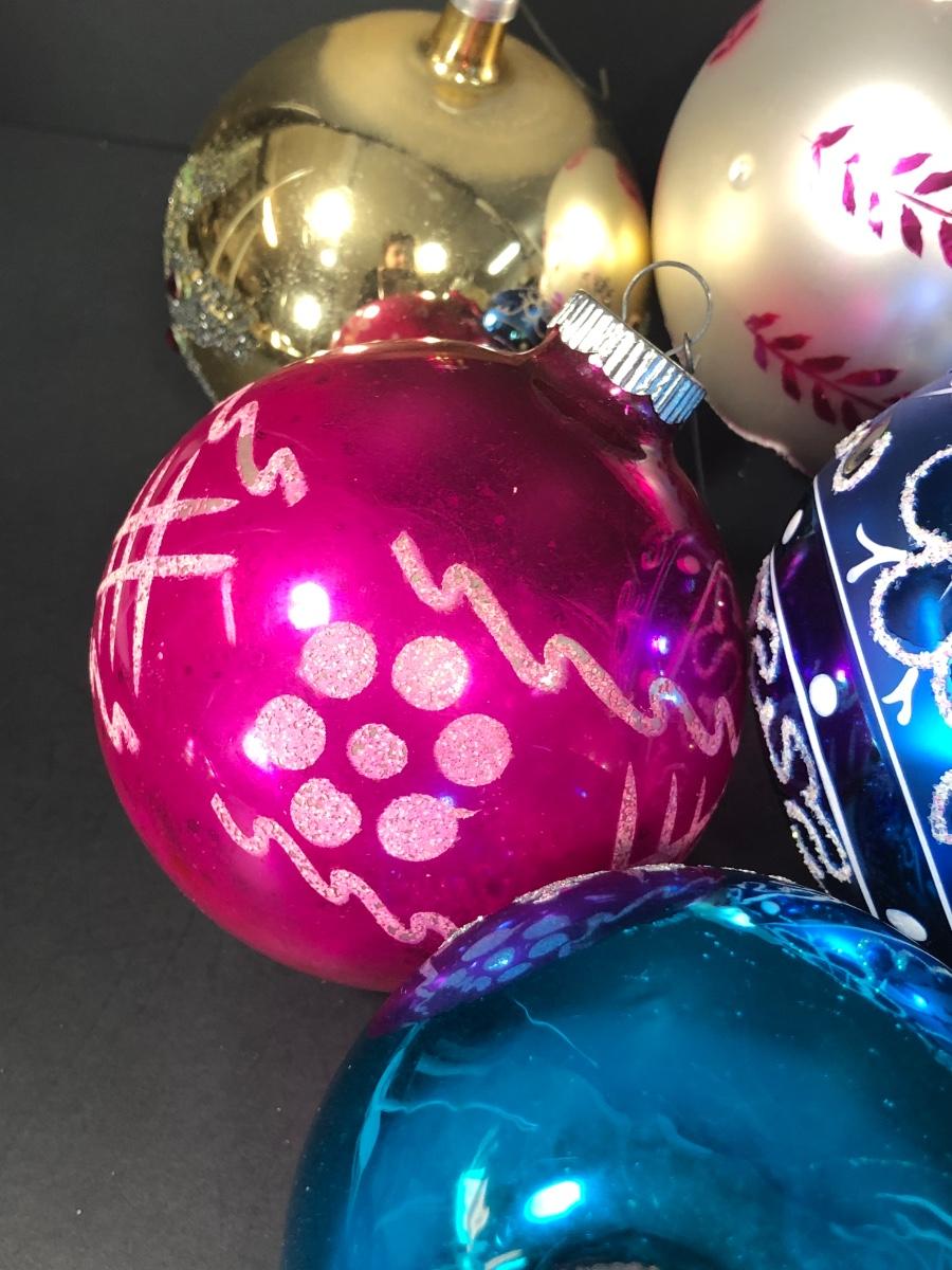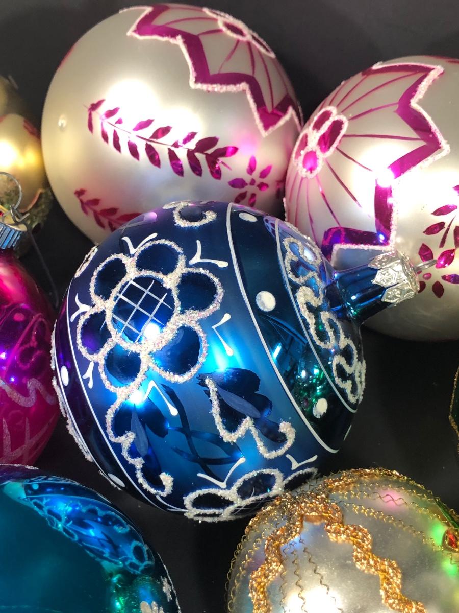 An assortment of Christmas balls, some marked "West Germany."