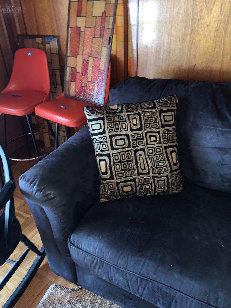 The couch has a burn hole. Please see all pictures as they are the best representation of the items. The pictures show condition, measurements if taken, and what is included in the lot. Due to the large amount that we photograph and the time frame, we are not always able to take measurements. All items unless noted, are pre-owned and have been used. If you purchased furniture, you must bring help. We do not allow one person to carry large furniture out on their own. Bring help, tools and a truck for the safety of our client’s homes, and your personal safety. Any damages that result to the property including walls, and floors due to moving of the furniture will be charged to the buyer. Company policy. Thank you