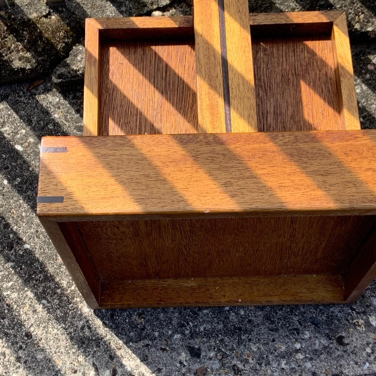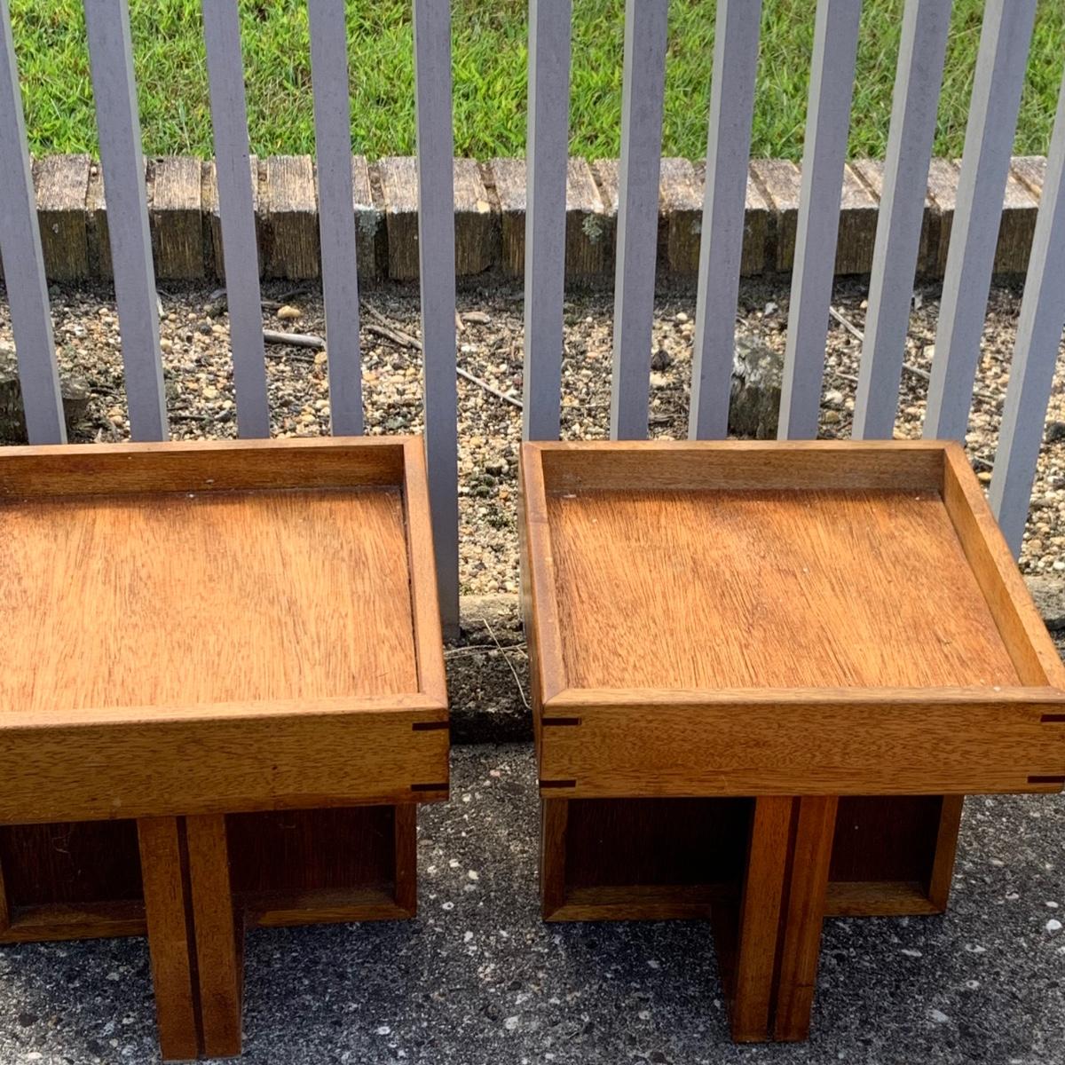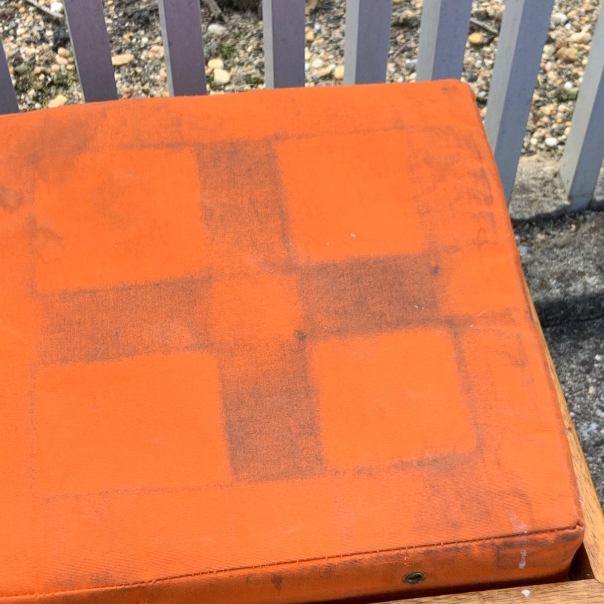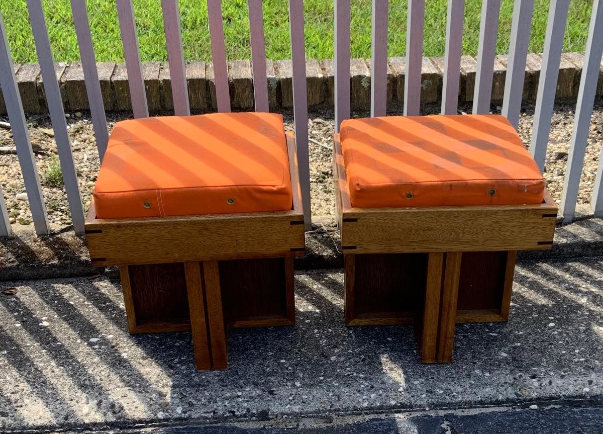 Lot:227G: Two Handcrafted Mid Century Ottomans/ Stool with Orange Canvas Cushions