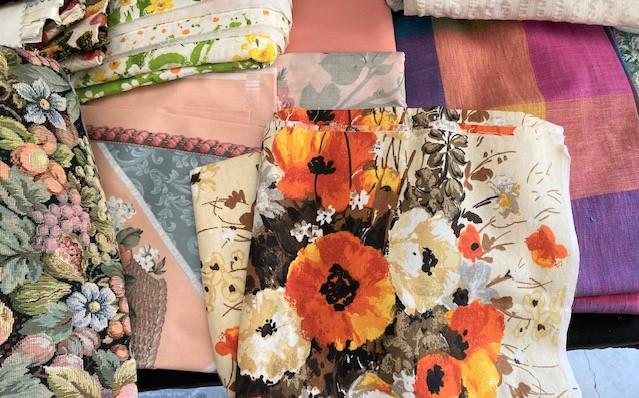 Flower, Halloween patterns & more. Estimated weight of lot: 35lbs. Measurement: 21" x 16" x 16"