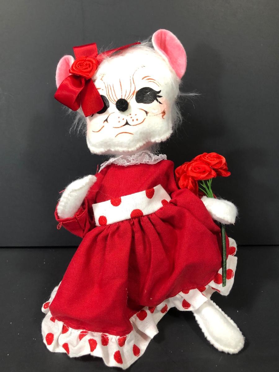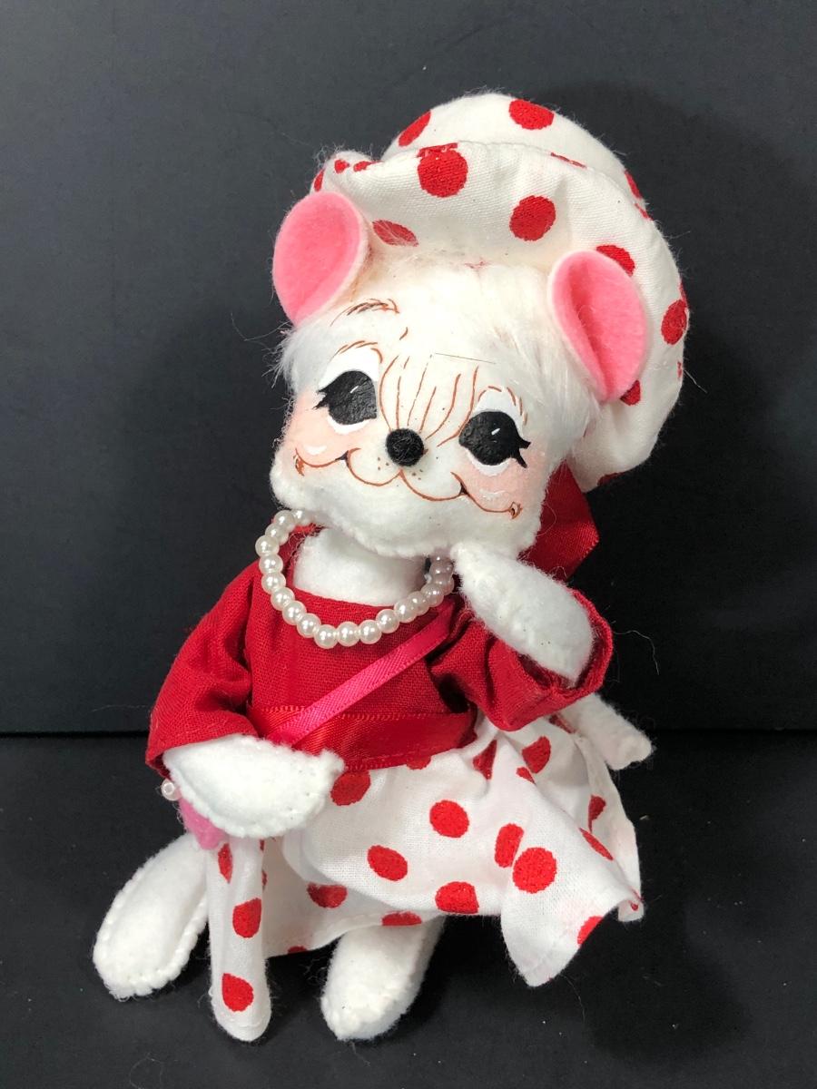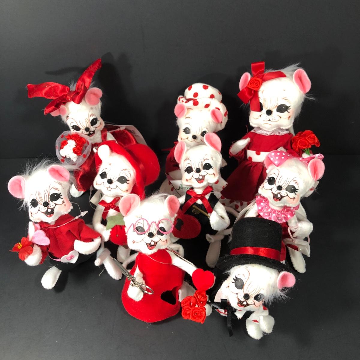 An assortment of Annalee dolls including two 6" Sweetheart Girl Mice, 6" Cute & Crafty Girl Mouse, 6" Key to My Heart Mouse, and more without tags.