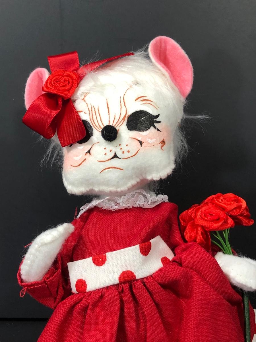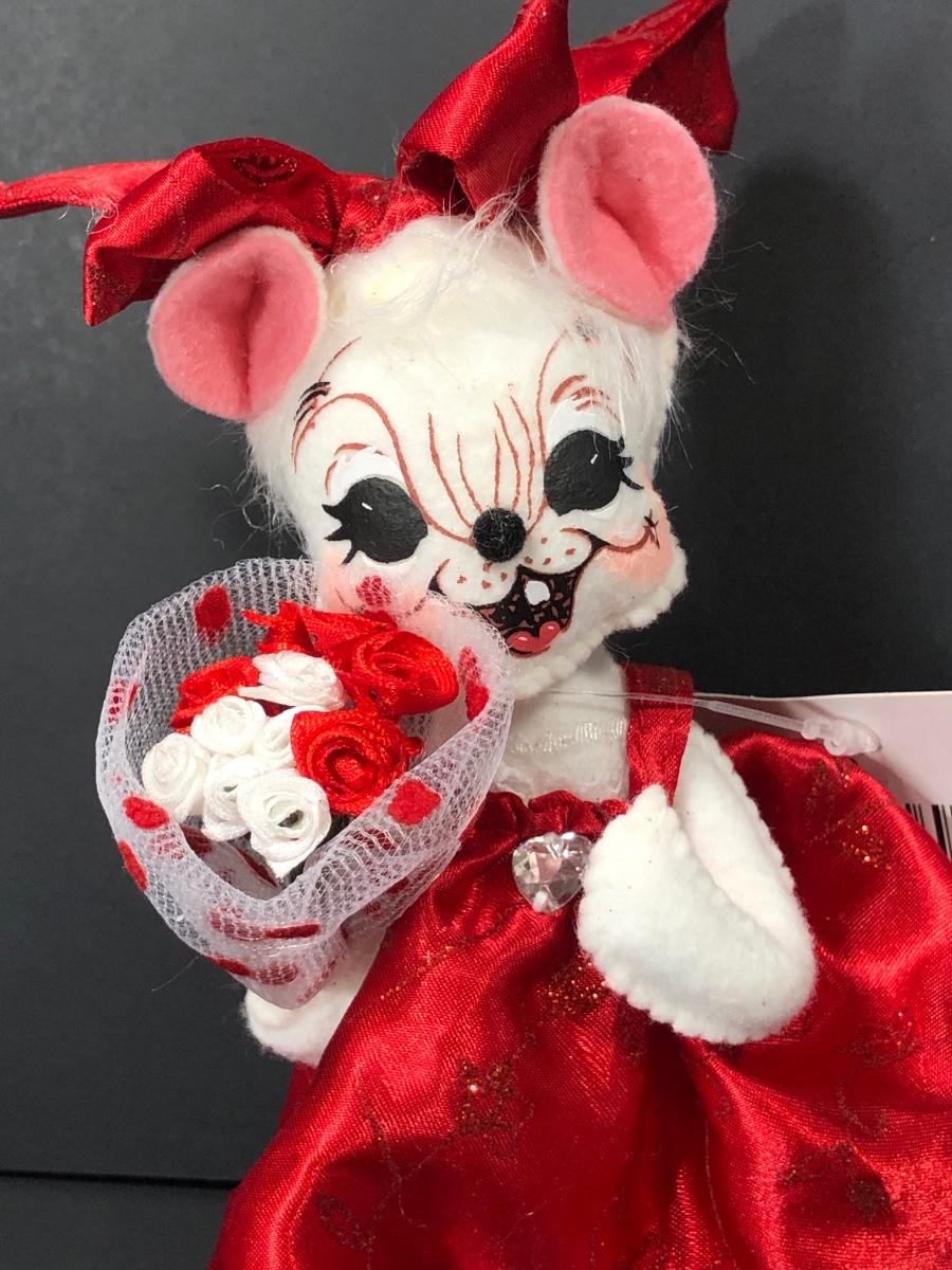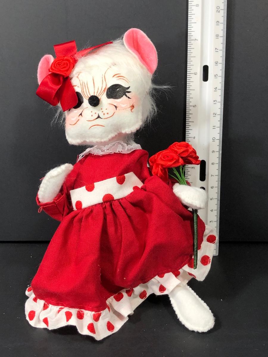 An assortment of Annalee dolls including two 6" Sweetheart Girl Mice, 6" Cute & Crafty Girl Mouse, 6" Key to My Heart Mouse, and more without tags.