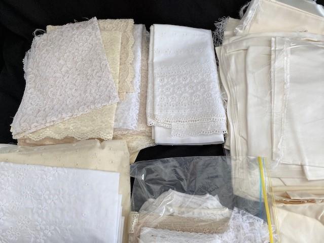 Bridal fabric & lace. Estimated weight of lot: 20lbs. Measurement: 21" x 16" x 12"