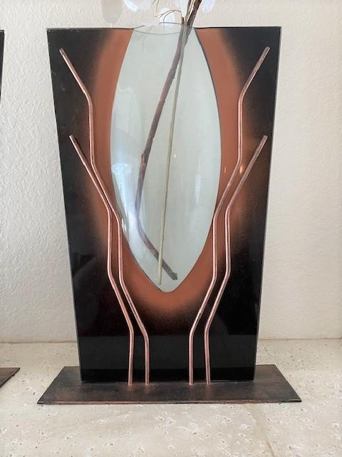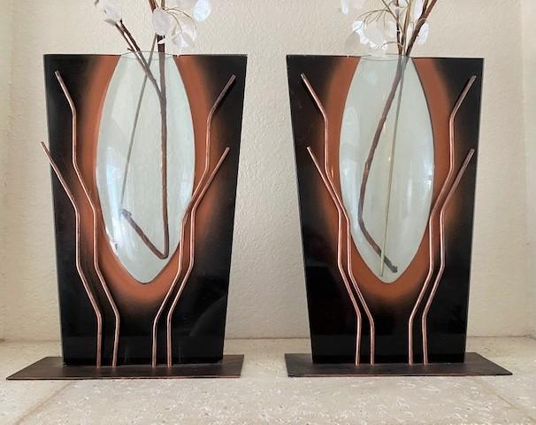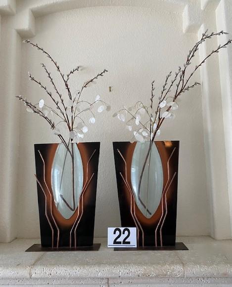 Metal with glass inserts. Estimated weight of lot: 20 lbs. Measurement: 21 1/2"H x 14"W (each)