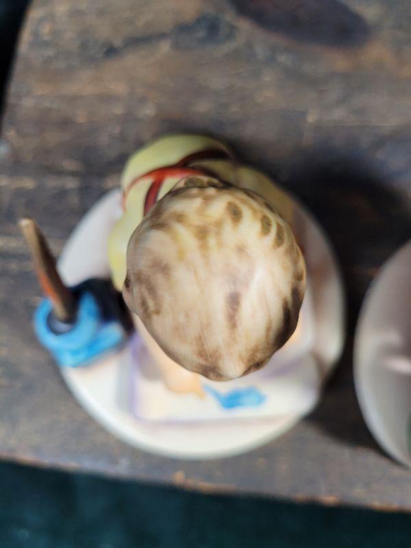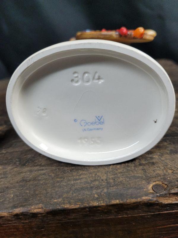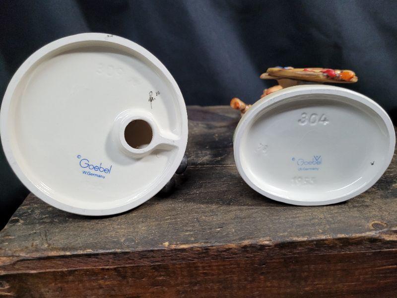 "The Artist" (TMK 5) has light crazing on his base, bottom, and face and heavy crazing on his knees. "With Loving Greetings" is in mint condition.