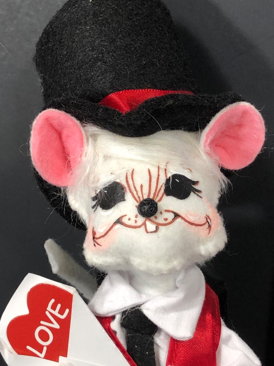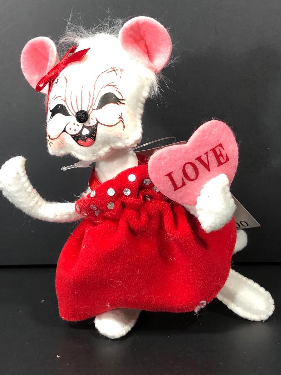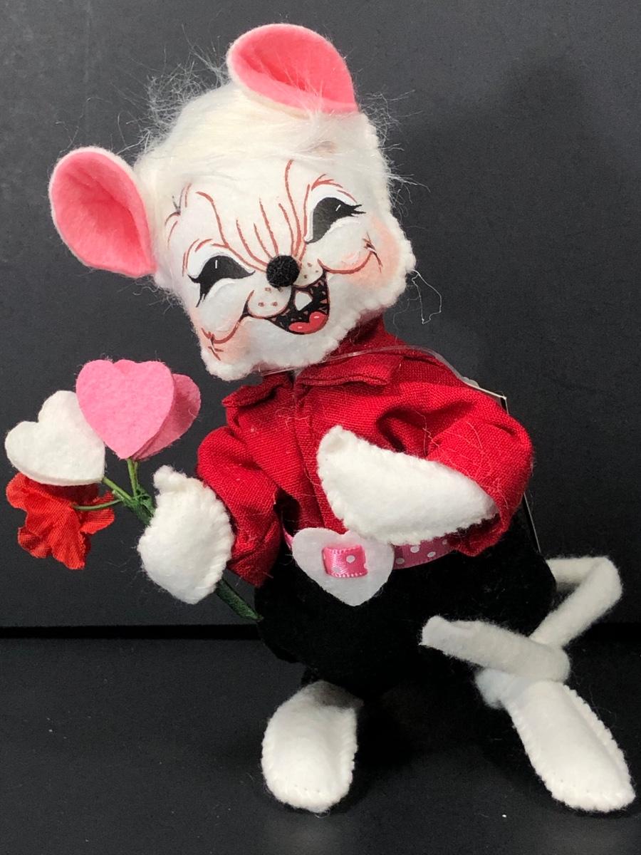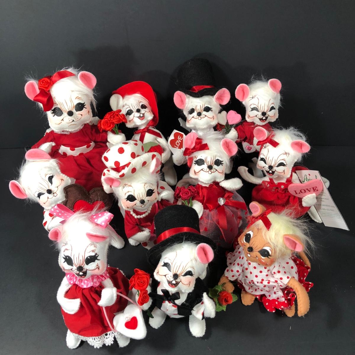An assortment of Annalee dolls including 6" You're Berry Sweet Mouse, 6" Mouse with Chocolate Heart, 6" Sweetheart Boy Mouse, 6" Valentine Girl Mouse and more without tags.