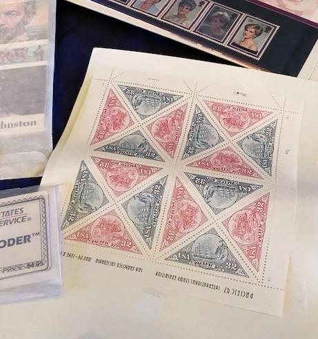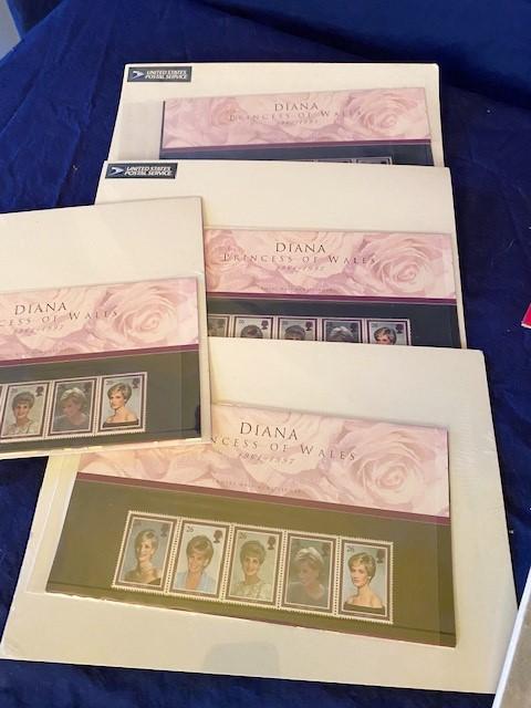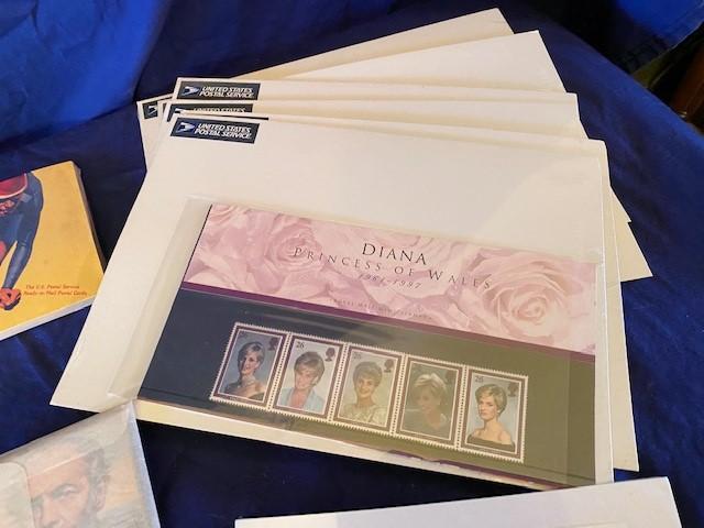 Includes multiple Princess Diana stamps, Pacific stamps, Civil War replica stamps, and more. 15+ items.