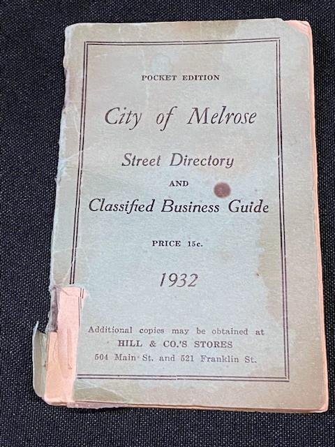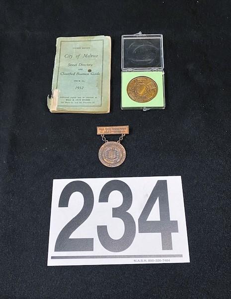 Includes: 1932 City of Melrose Street directory, Malden, MA D. copper coin, 1917 Malden, MA copper medal.