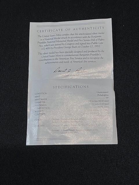LOT#236J: 2012 Ben Franklin Firefighters Silver Medal