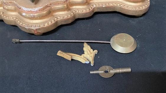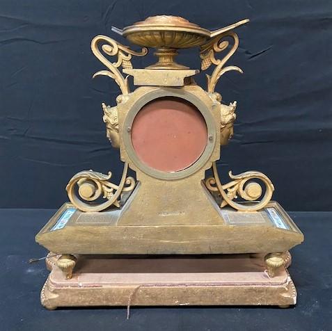 Gilt spelter & wood base. Appears to be enameled. Missing a rondelle. Measurement: 14 1/2"H x 14 1/2"W x 7"D
