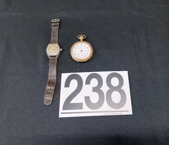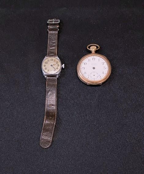 Includes: Waltham Gold-filled pocket watch ( missing hands & crystal) & 1930's style men's Elgin wrist watch.