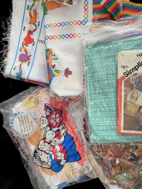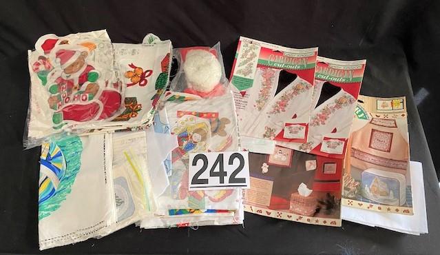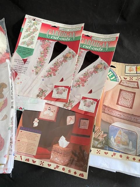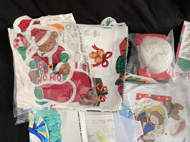 Christmas patterns, fabric & more. Estimated weight of lot: 25lbs. Measurement: 16" x 11" x 22"