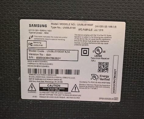 LOT#242MB1: 2016 Samsung 58" Flat Screen TV