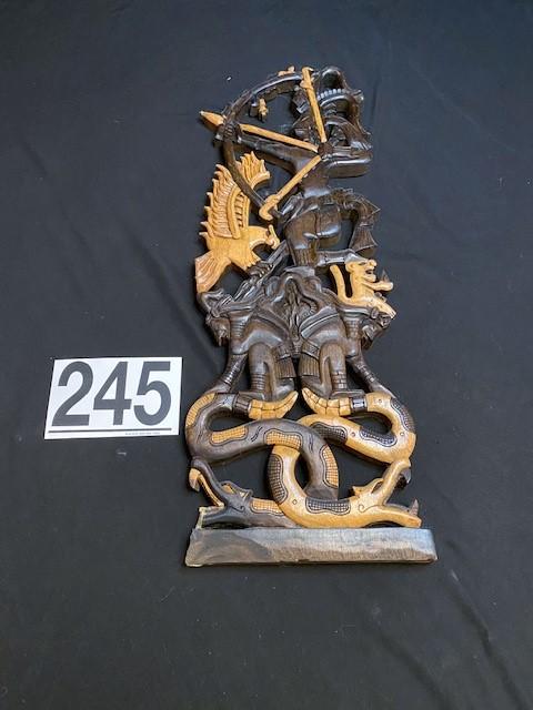 Carved wood. Left bottom corner broken off (as pictured). Estimated weight of lot: lbs. Measurement: 26"H x 10"W