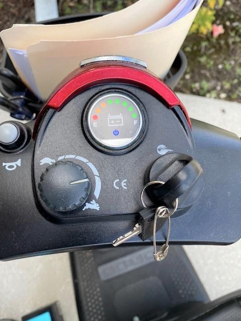 Scooter 3 wheel w/ paperwork. Estimated weight of lot: 75lbs. Measurement: 40"L x 34"H x 20"W