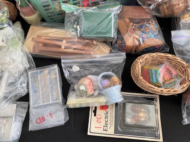Doll accessories, baskets, flatware, picnic set & more. Estimated weight of lot: 10lbs. Measurement: 25" x 20"