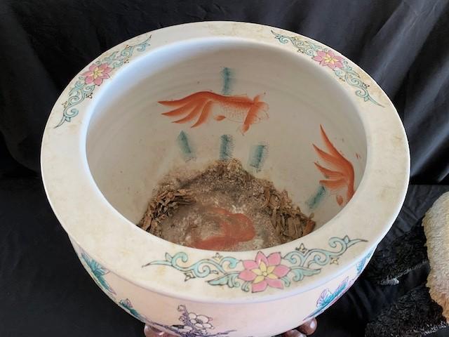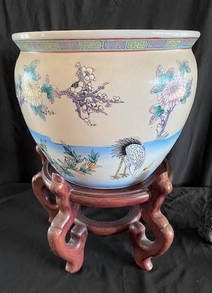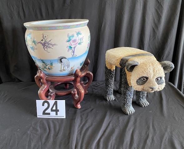 Includes panda plant stand, mahogany stand, and Asian planter.