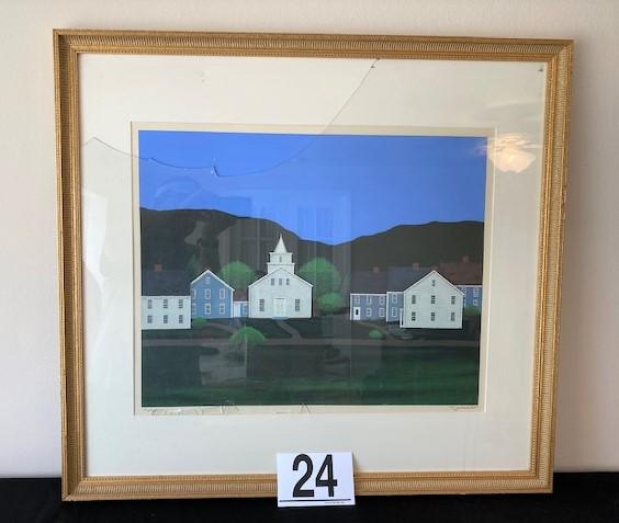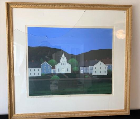 Minor damage to art as result of broken glass. Estimated total lot weight: 20lbs. Measurement: 36"W x 34"H
