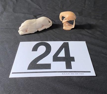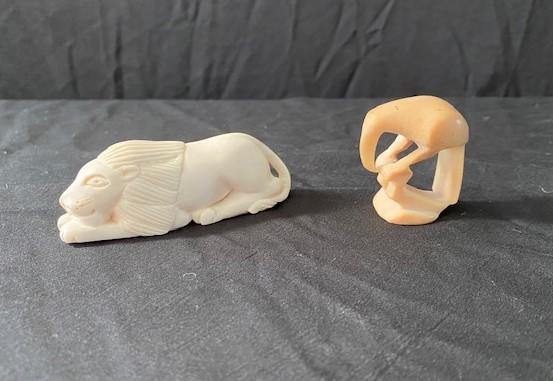 One appears to be a lion; other appears to be a toucan. Measurement: 3 1/2"L x 2 3/4"H