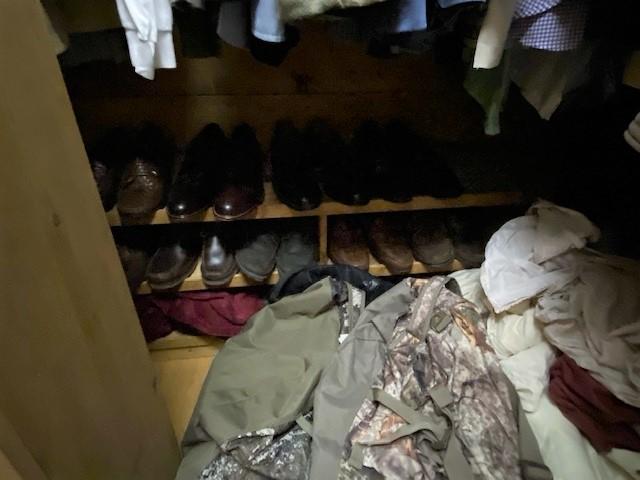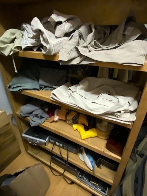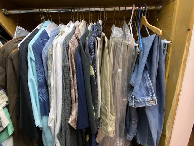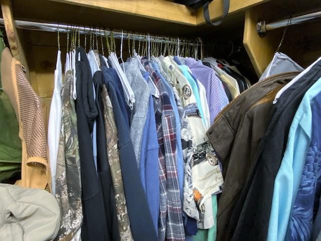Contents of closet. Includes Under Armour, Cabela's, Ralph Lauren, Levi's, and much more. Shirts, shorts, jeans, shoes, and more. Size 2x-4x. 150+ pieces. Air handler and hot water heater not included.
