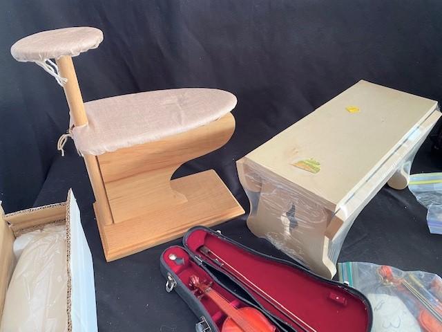 Fans, instruments, iron, iron board & more. Some is NOS. Estimated weight of lot: 10lbs. Measurement: 24 x 15" x 12"