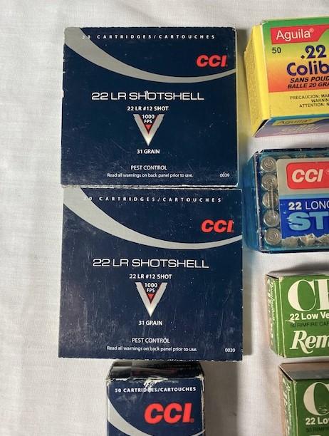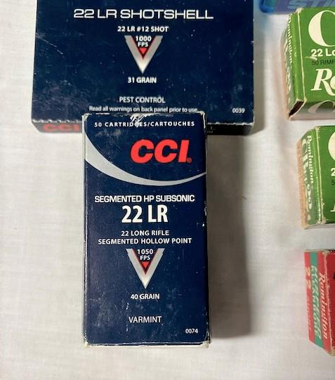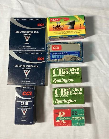 8 boxes. 340 rounds total. Stnger Remington & CCI. Estimated weight of lot: 2lbs. Measurement: 4" x 3" (each)