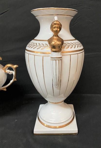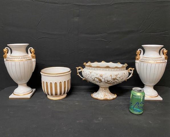 White & gold colored ceramic lot. Measurement: 13"H (tallest) 13"W (widest)