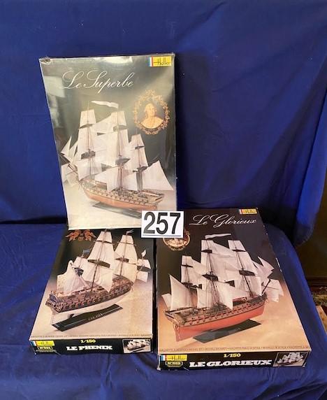 "Le Glorieux," "Le Phenix," and "Le Superbe." NOS. All 1:150 scale. One has plastic overwrap. Estimated weight of lot: 15 lbs. Measurement: 23"L x 16"W x 12"D