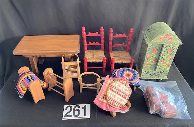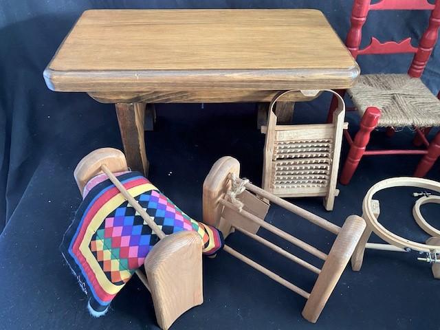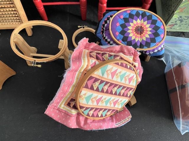 Table, chairs, quilt racks, quilts & more. Estimated weight of lot: 20lbs. Measurement: 20" x17" x 15"